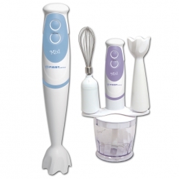 Urządzenie stanowi idealne uzupełnienie kuchennych sprzętów. Posiada możliwość ustawienia dwóch prędkości. Blender wyposażony jest w ostrze ze stali nierdzewnej. Do pakietu dołączone są akcesoria takie jak trzepaczka i szatkownica, zestaw trzymający. Produkt dostępny jest w dwóch kolorach: niebieskim i fioletowym.