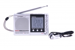 Kieszonkowy odbiornik dziesięciozakresowy AM/FM/SW z wyświetlaczem. Posiada łatwy w obsłudze panel, dzięki któremu bez trudu można ustawić wybraną funkcję. Ponadto do radia dołączone są gratis słuchawki douszne oraz pasek do noszenia urządzenia.