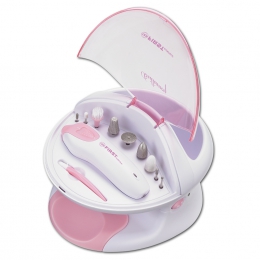 10 wymiennych nasadek: stożek szlifujący, szczotka polerująca, gładzik piłowania, stożkowy pilnik paznokci, spiczasty stożek szlifowania, kulisty gładzik piłowania, duża tarcza do szlifowania, spychacz naskórka